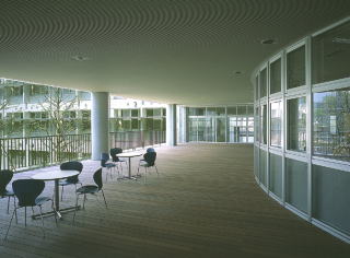 空間の透明性は緑豊かな森(中庭)との一体感を演出し、コミュニティスペース、コミュニティブリッジを中心として、自然なコミュニケーションを誘発する舞台を形成している。そこは四季に応じた自然(光・風・森etc)との交流の場でもある。